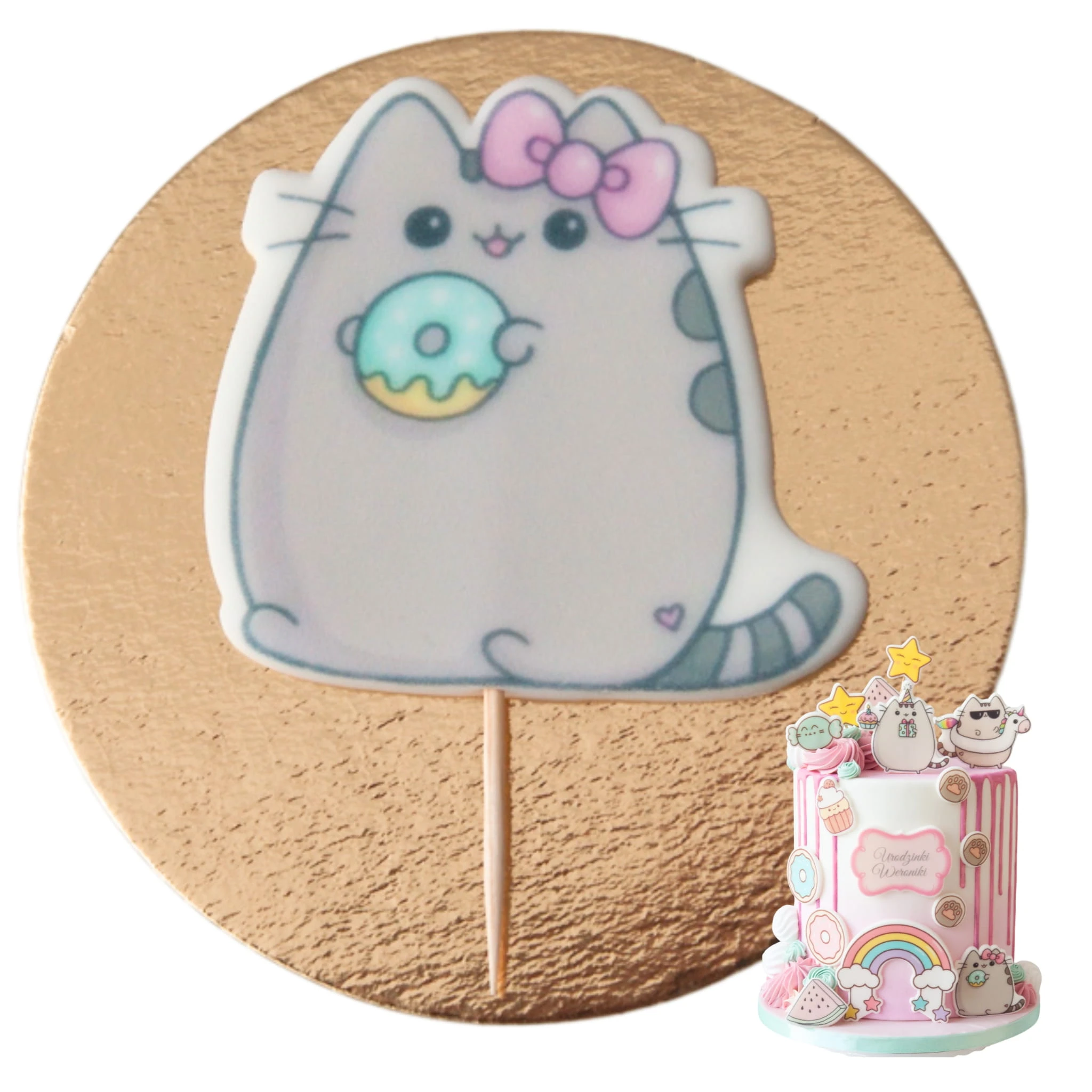 FIGURKA do dekoracji tortu PUSHEEN Z DONUTEM / KOTEK