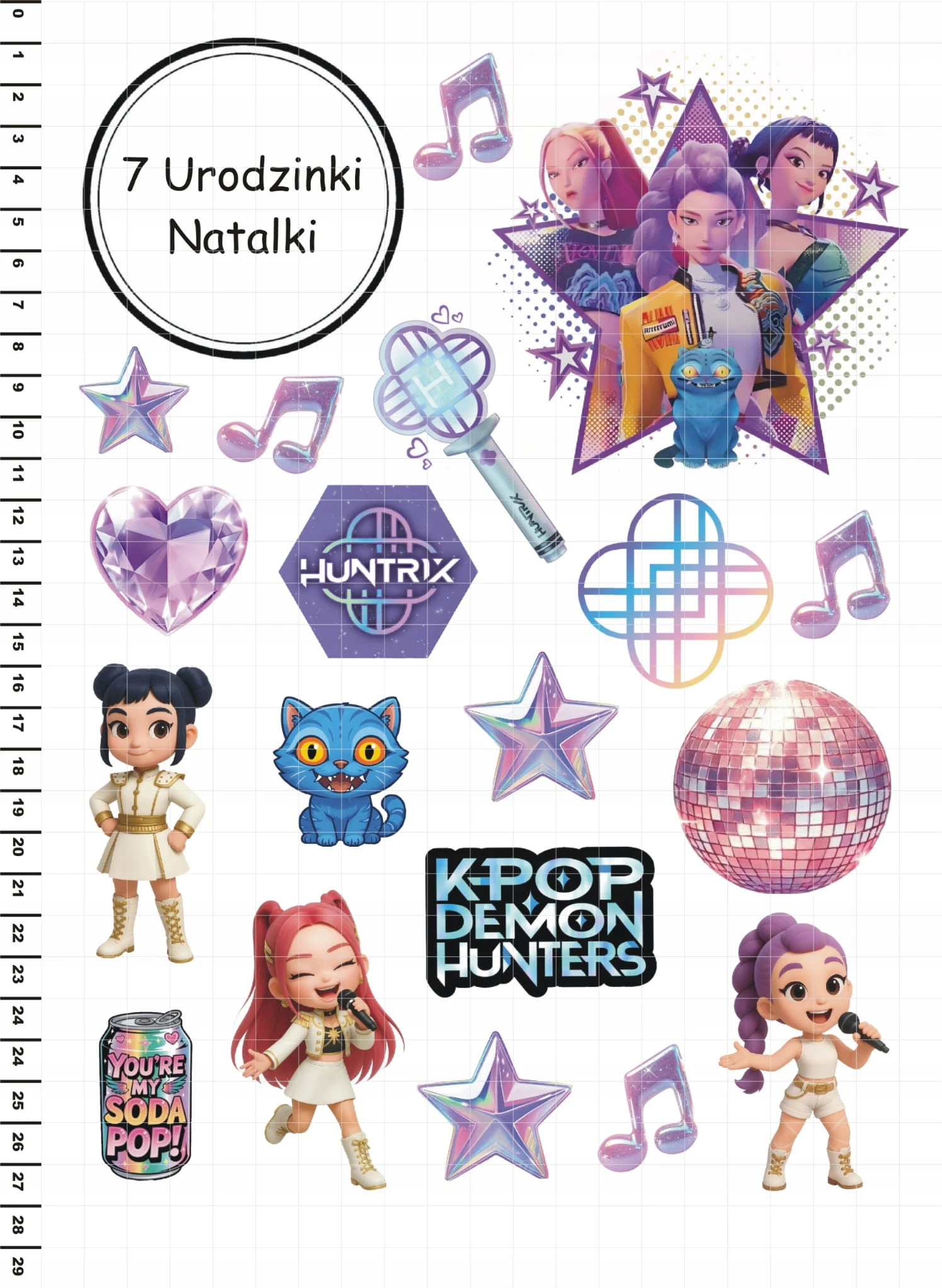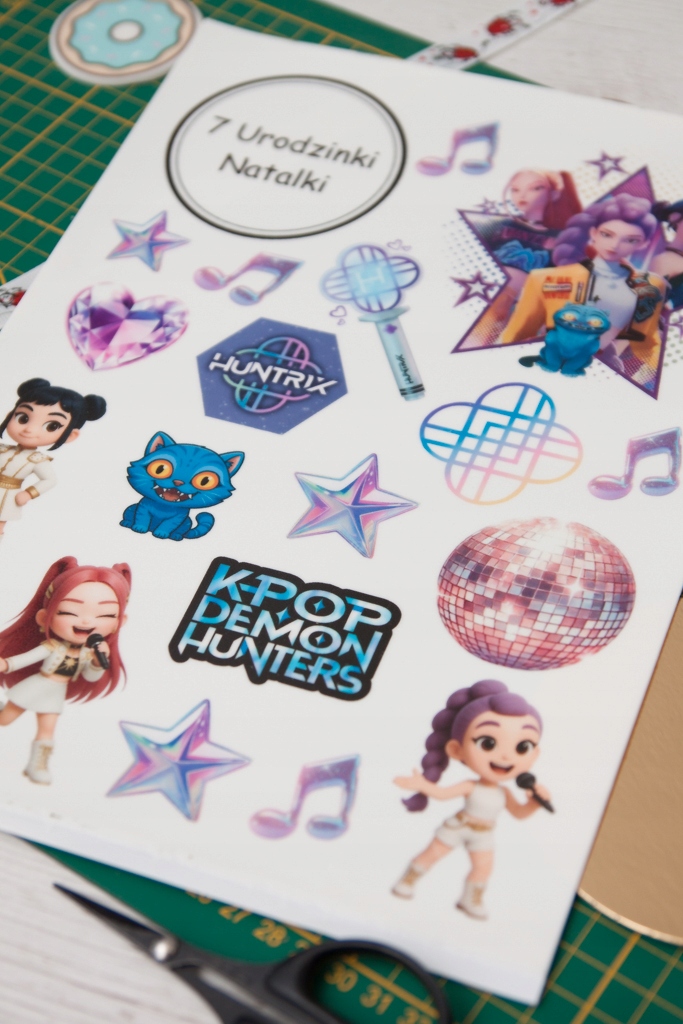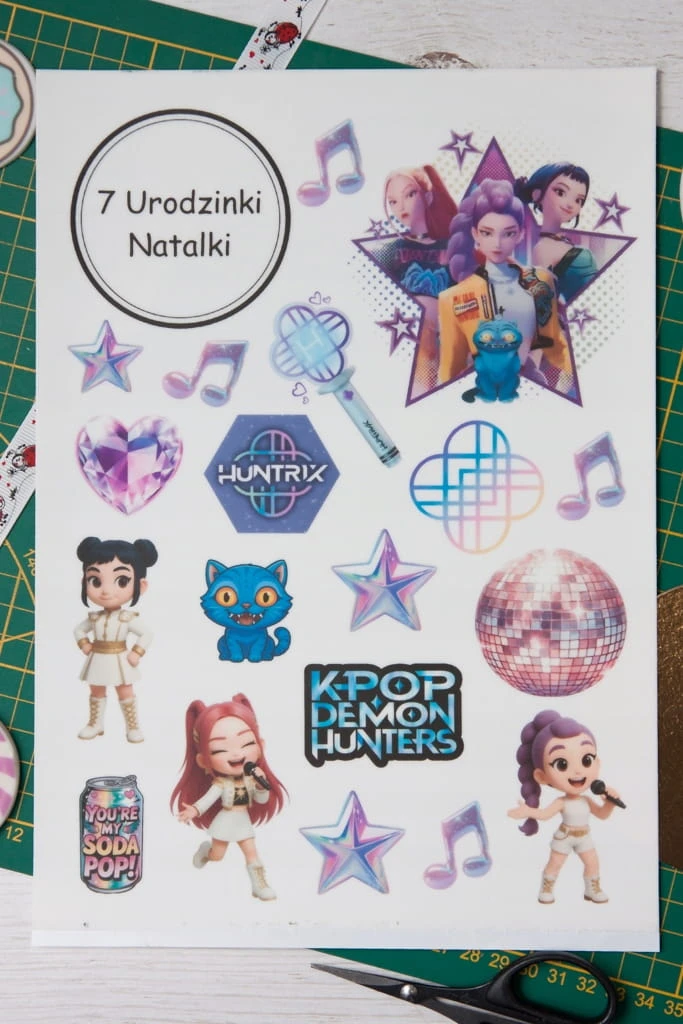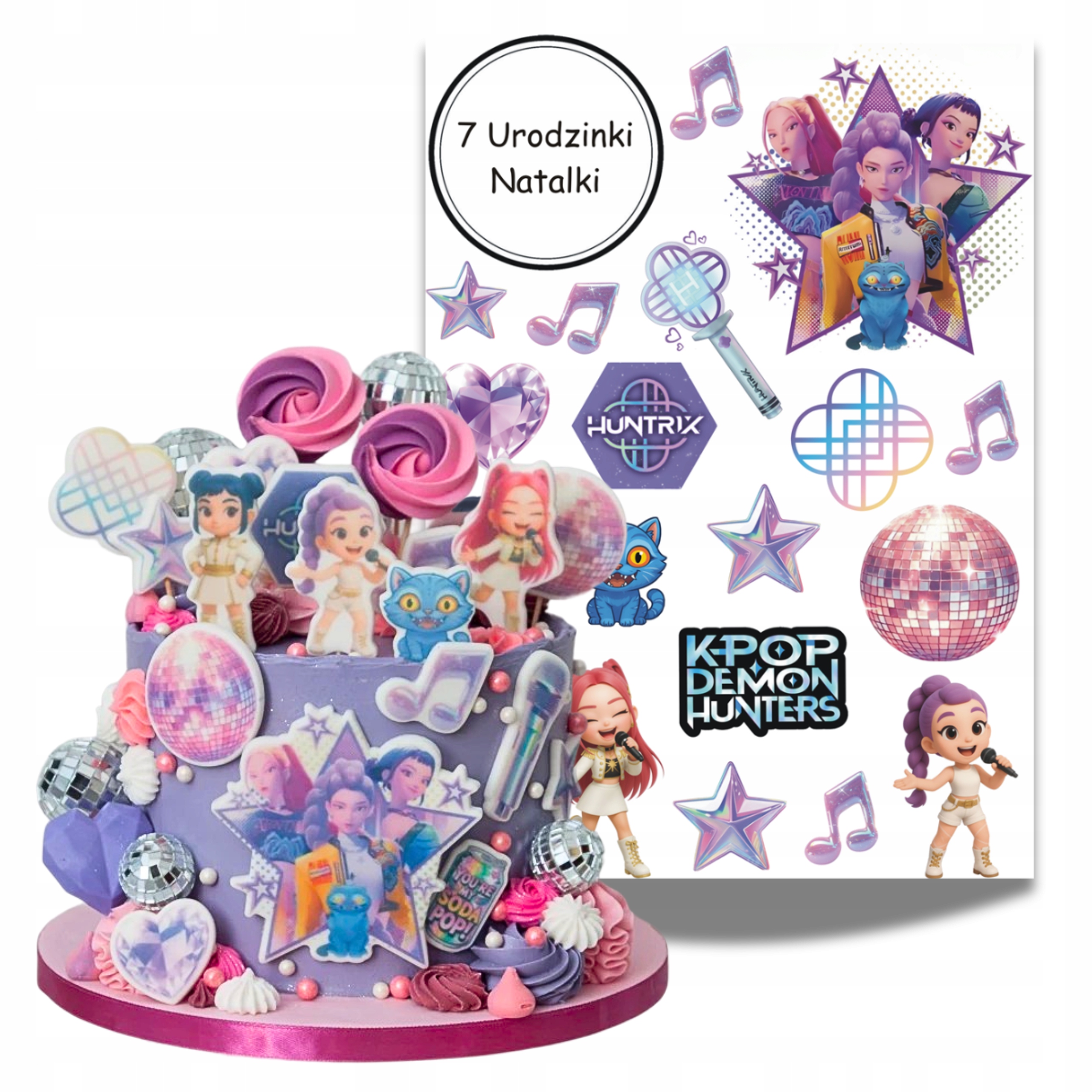 Wydruk cukrowy na Tort HUNTRIX KPOP DEMON HUNTERS 20 El + TABLICZKA NAPIS