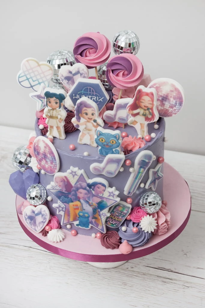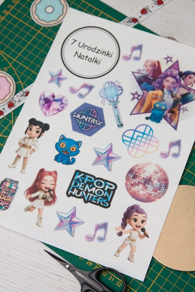 Wydruk cukrowy na Tort HUNTRIX KPOP DEMON HUNTERS 20 El + TABLICZKA Z NAPISEM