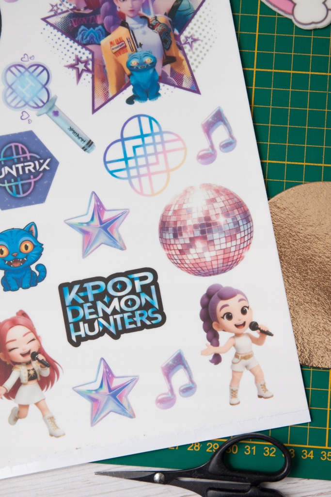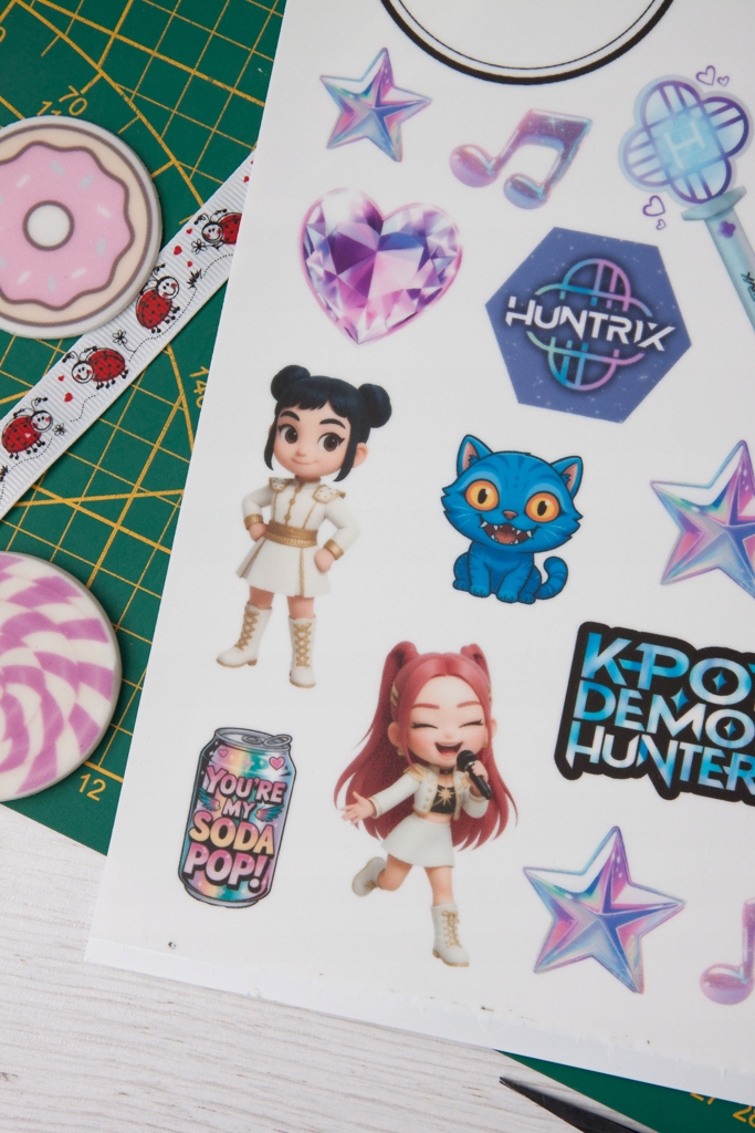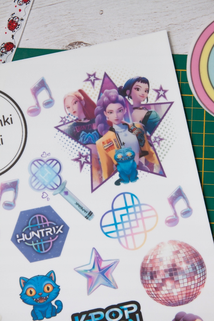 - Huntrix K-popowe Łowczynie Demonów (10 cm x 10 cm) - 1 szt. Rumi (6,5 cm x 4 cm) - 1 szt.