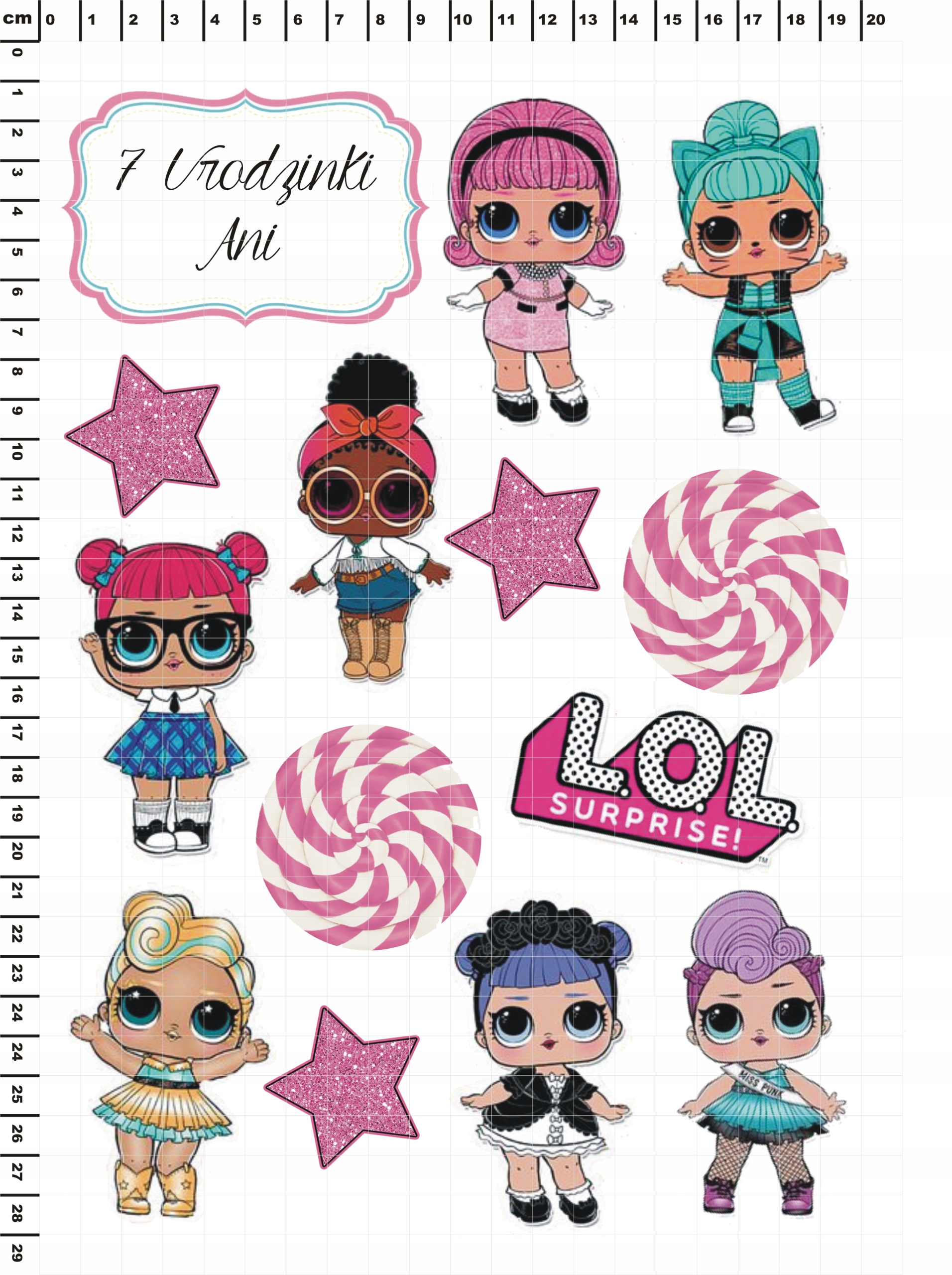 Opłatek dekoracja na Tort LOL 14 El + GRATIS Tabliczka Napis figurki ozdoba