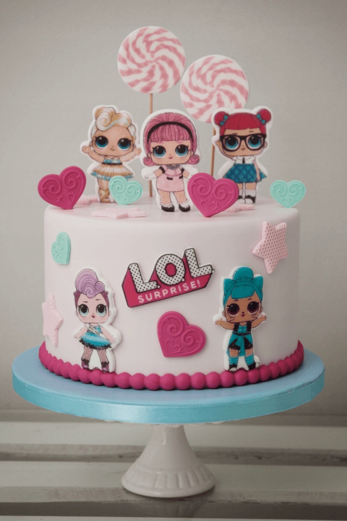 Aby przytwierdzić opłatek, wystarczy delikatnie nawilżyć powierzchnię ciasta np. kremem, a następnie umieścić wycięte postacie. Zestaw doskonale komponuje się z tortami pokrytymi masą cukrową, ale sprawdzi się także na tortach z bitą śmietaną lub kremem. Dodatkowo możesz dodać do dekoracji figurki LOL z masy cukrowej (dostępne w naszej ofercie), które stanowią doskonałe uzupełnienie całej kompozycji. Taki sposób zdobienia jest nie tylko prosty, ale także zapewnia spektakularny efekt – idealny na urodziny, kinderbale, czy imprezy tematyczne.