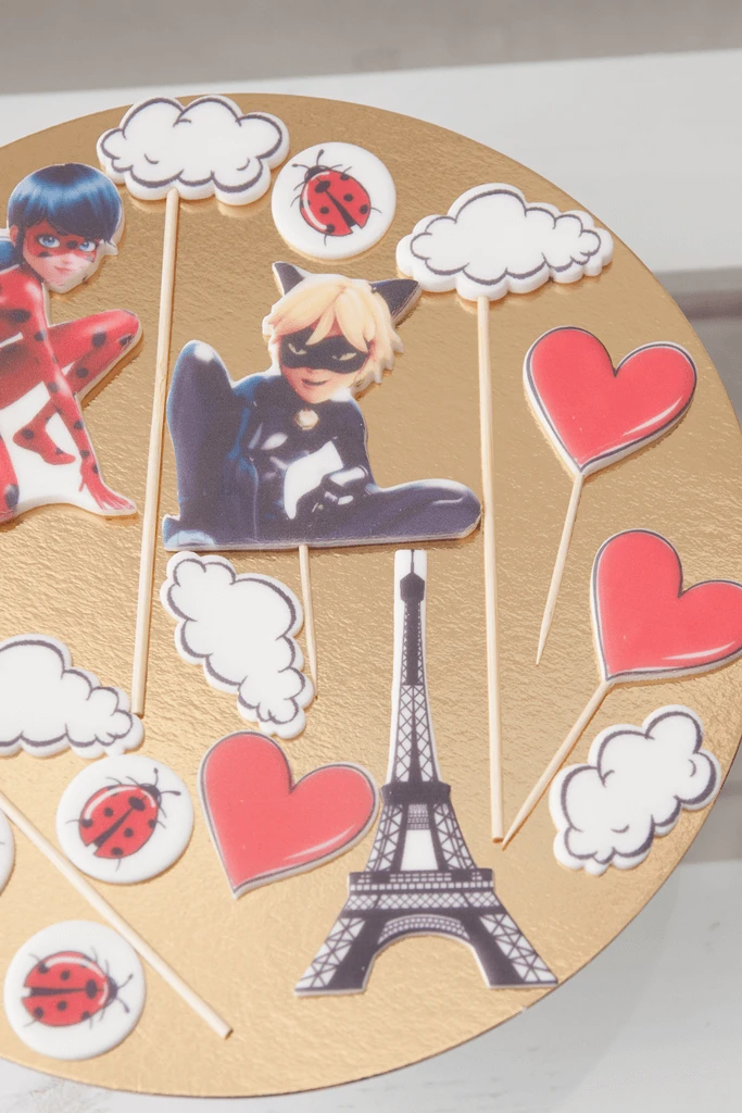 ZESTAW do dekoracji tortu BIEDRONKA I CZARNY KOT / MIRACULUM