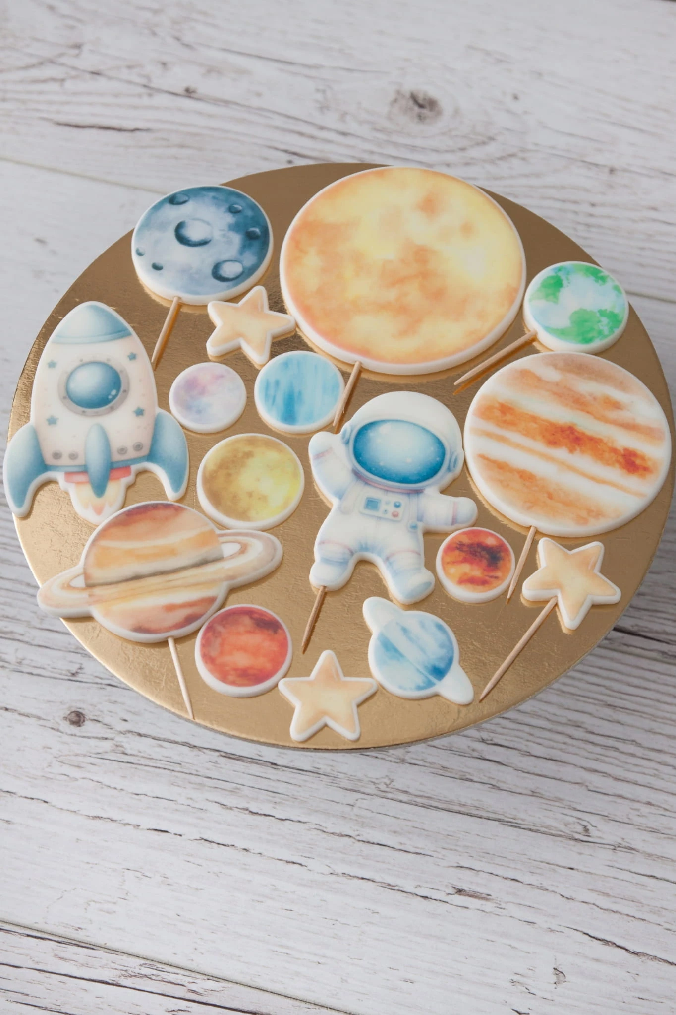 ZESTAW do dekoracji tortu KOSMOS / KOSMONAUTA / PLANETY