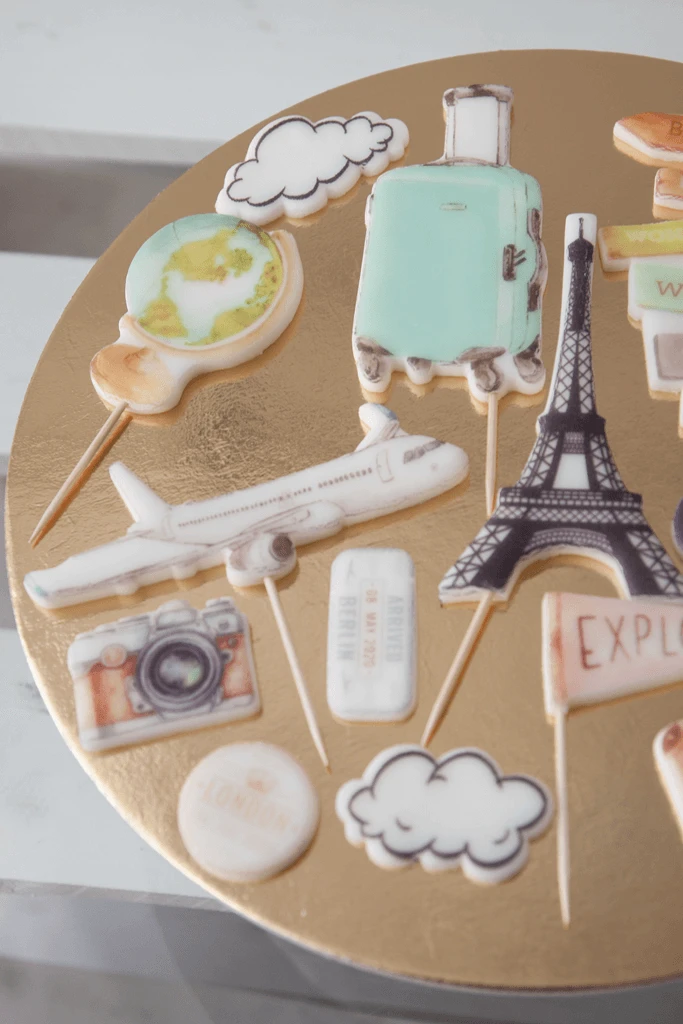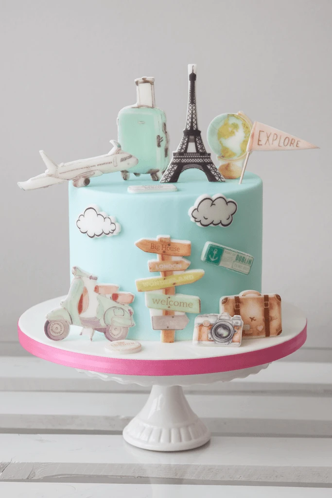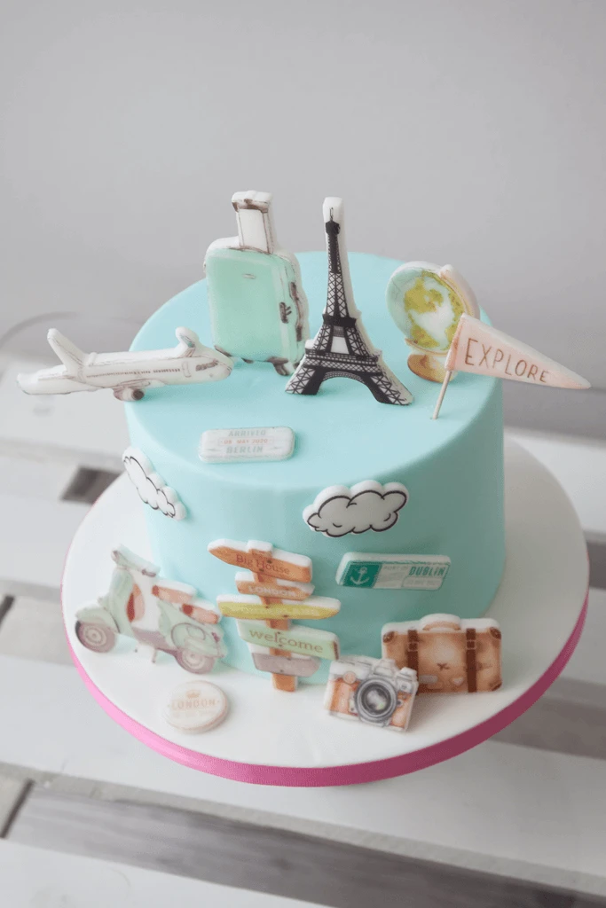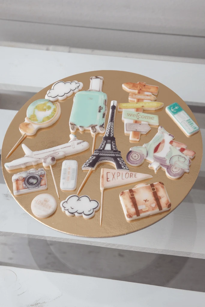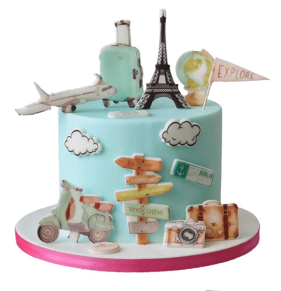 ZESTAW do dekoracji tortu PODRÓŻNICZY / PODRÓŻE / WAKACJE