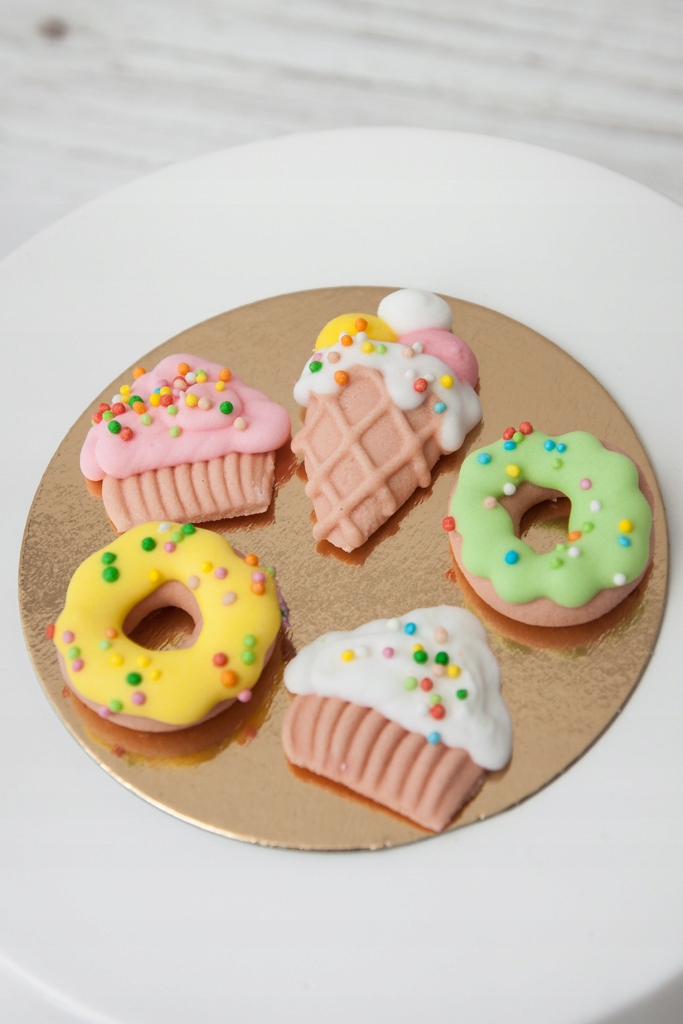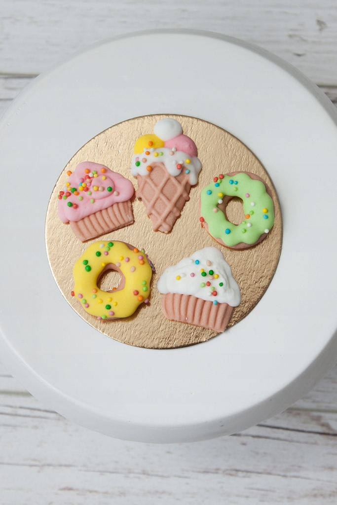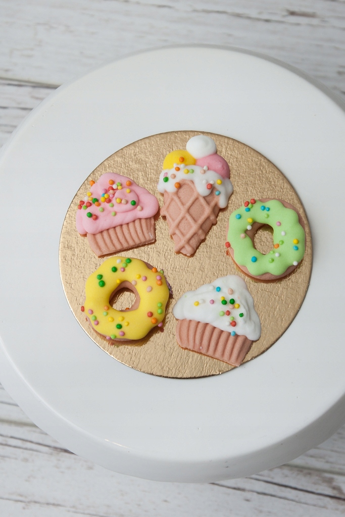 Zestaw do dekoracji tortu słodycze cukrowe 5 szt. lód donut babeczki