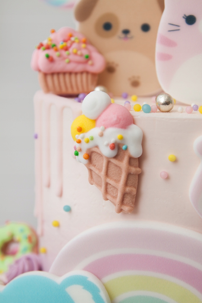 Dekoracje wykonane są z masy cukrowej z niezwykłą starannością i dbałością o każdy, najdrobniejszy nawet detal. Idealnie ozdobią tort urodzinowy dla dziecka.